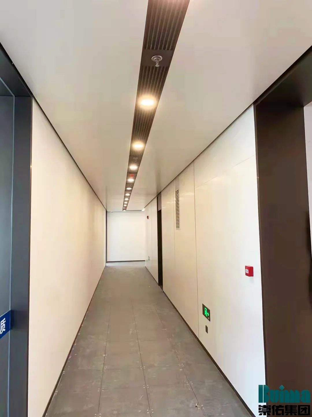 實景實拍---武漢天風大廈的電梯廳及過道,采用的就是崇佑的複合瓦楞鋁板吊頂,優質合金鋁麵板及瓦楞,使得該產品具有良好的平整度、整體性視覺效果。