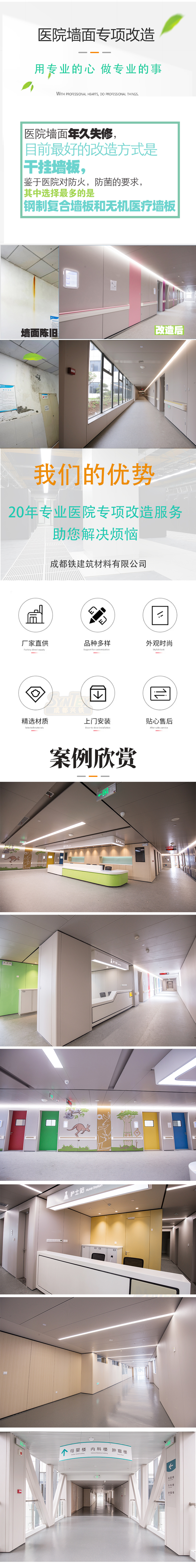 介紹:醫院91免费视频污年久失修,目前最好的改造方式是幹掛91免费视频污,鑒於醫院對防火,防菌的要求,其中選擇最多的是鋼製複合91免费视频污和無機醫療91免费视频污。